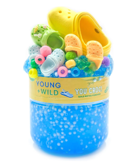 Celebrate Valentine’s Day with our You Croc My World Slime, a fun gel slime slime with a light blueberry scent bursting with playful charm and kid-approved squish factor.