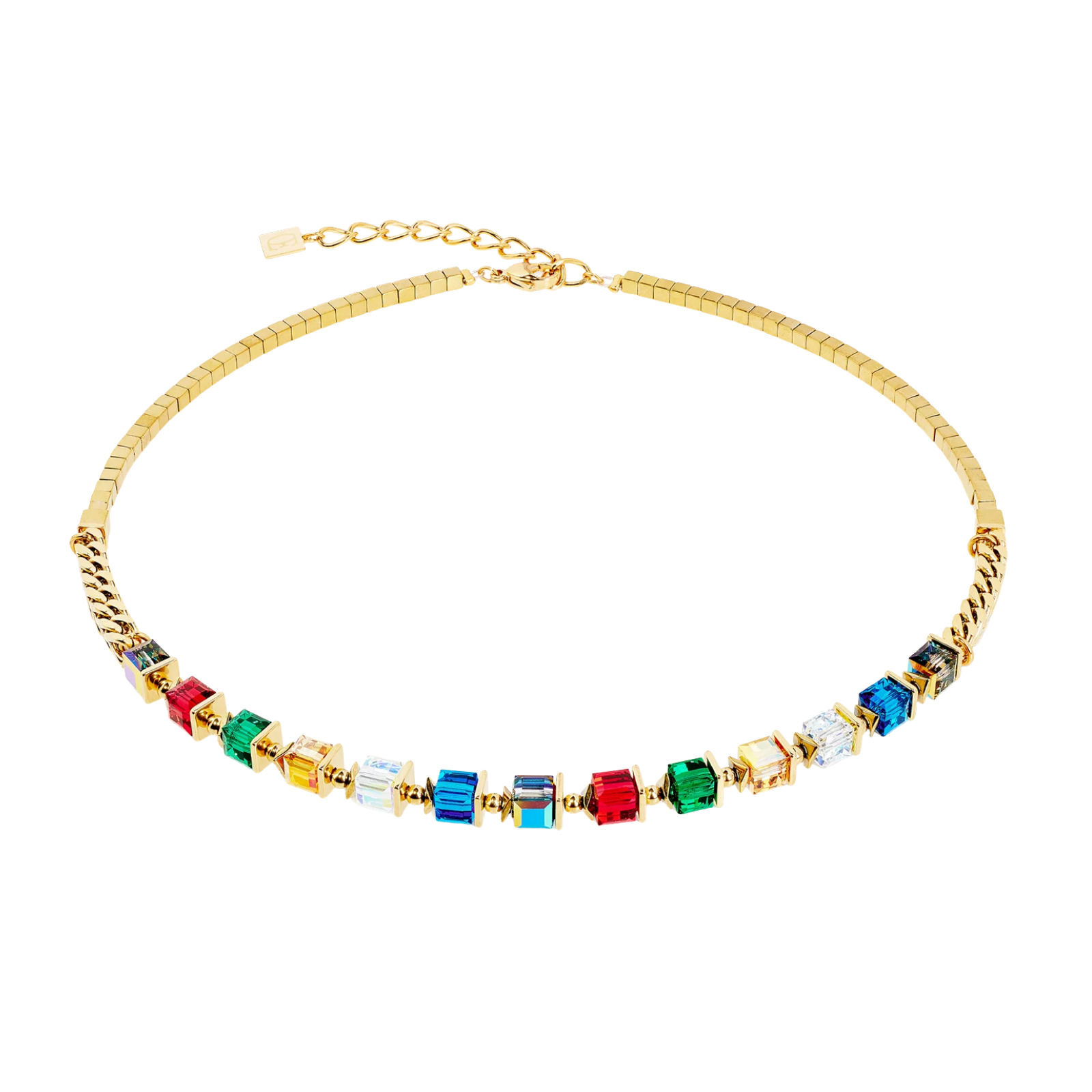 Sparkling Cubes Fusion Chain Necklace Gold-Multicolor