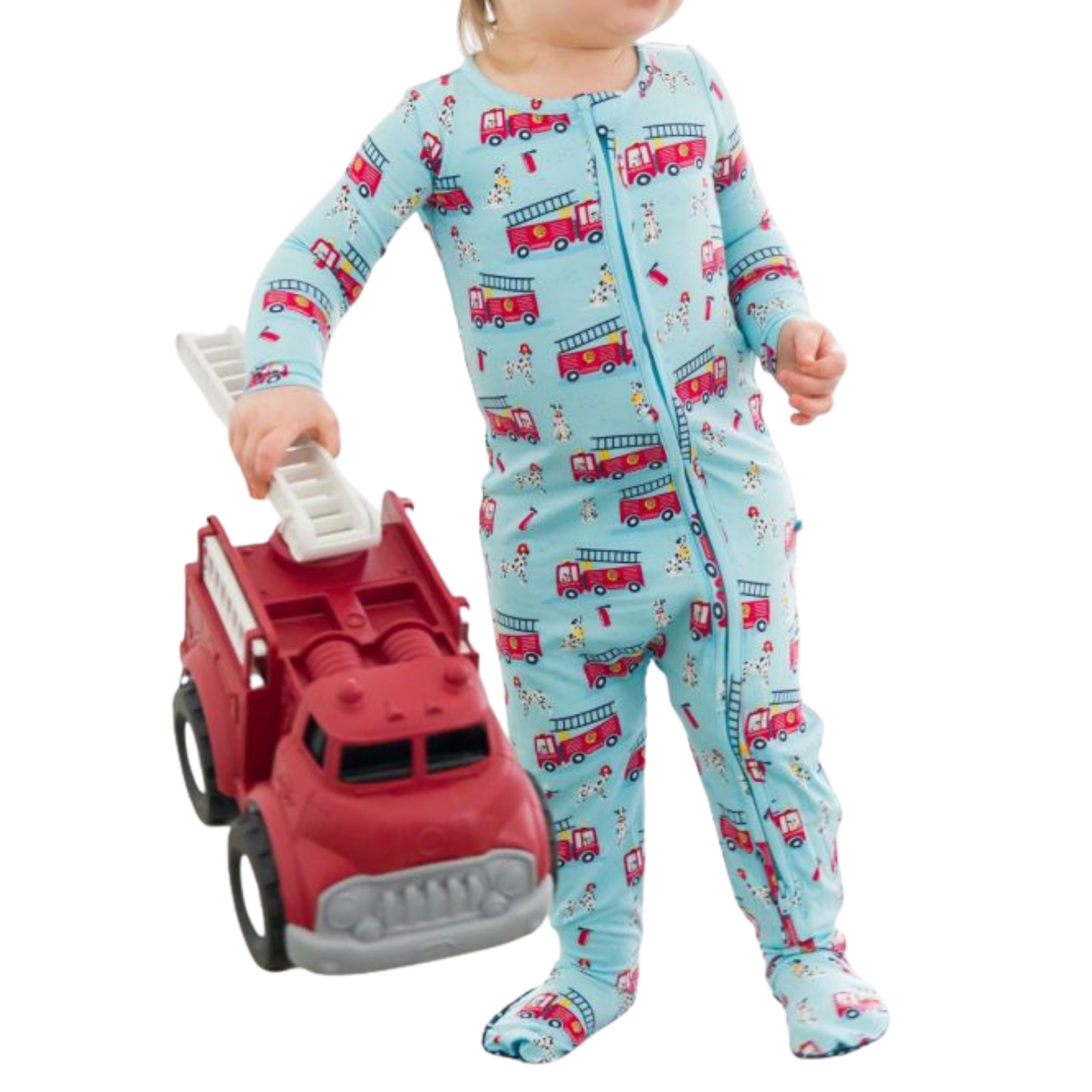 Dalmatians and fire trucks will make bedtime fun for little heroes! This super soft sleeper will keep little ones comfy without compromising on style. A two-way zipper makes changing a breeze, so everyone can get the best night's rest. Grips on the feet will help early walkers have steady footing. Featuring foldover mitts on Newborn and 0-3m sizes. Tagless for added comfort