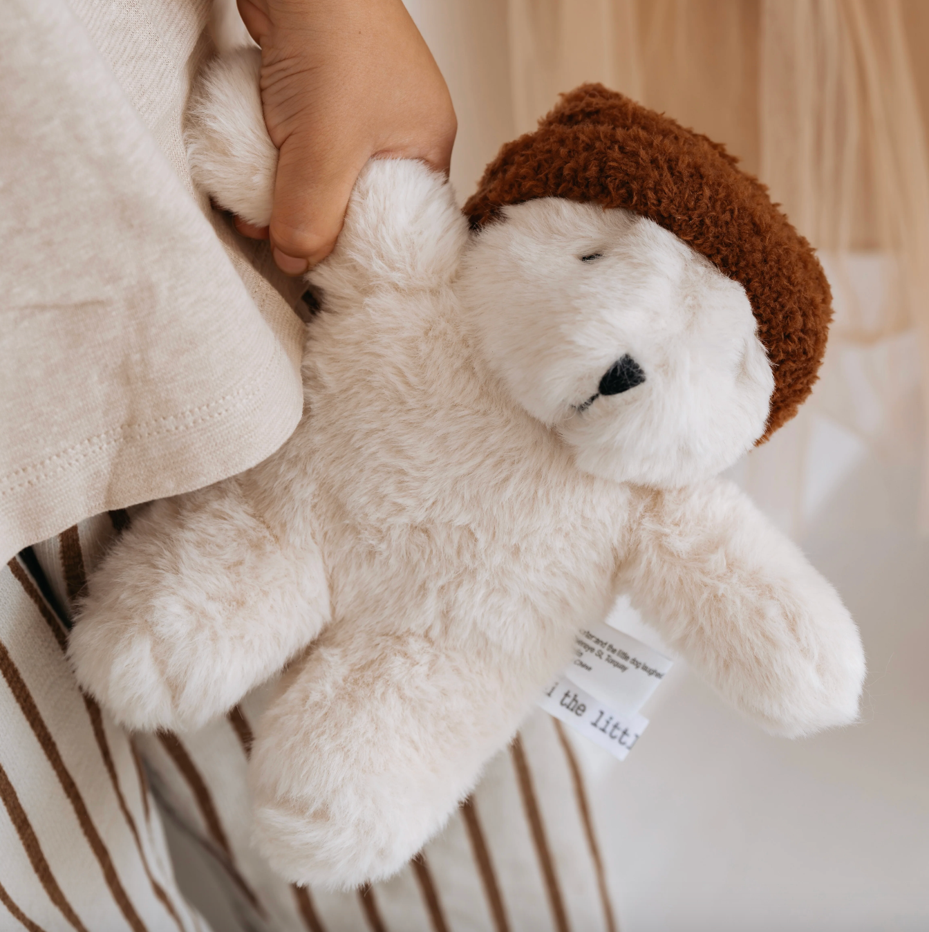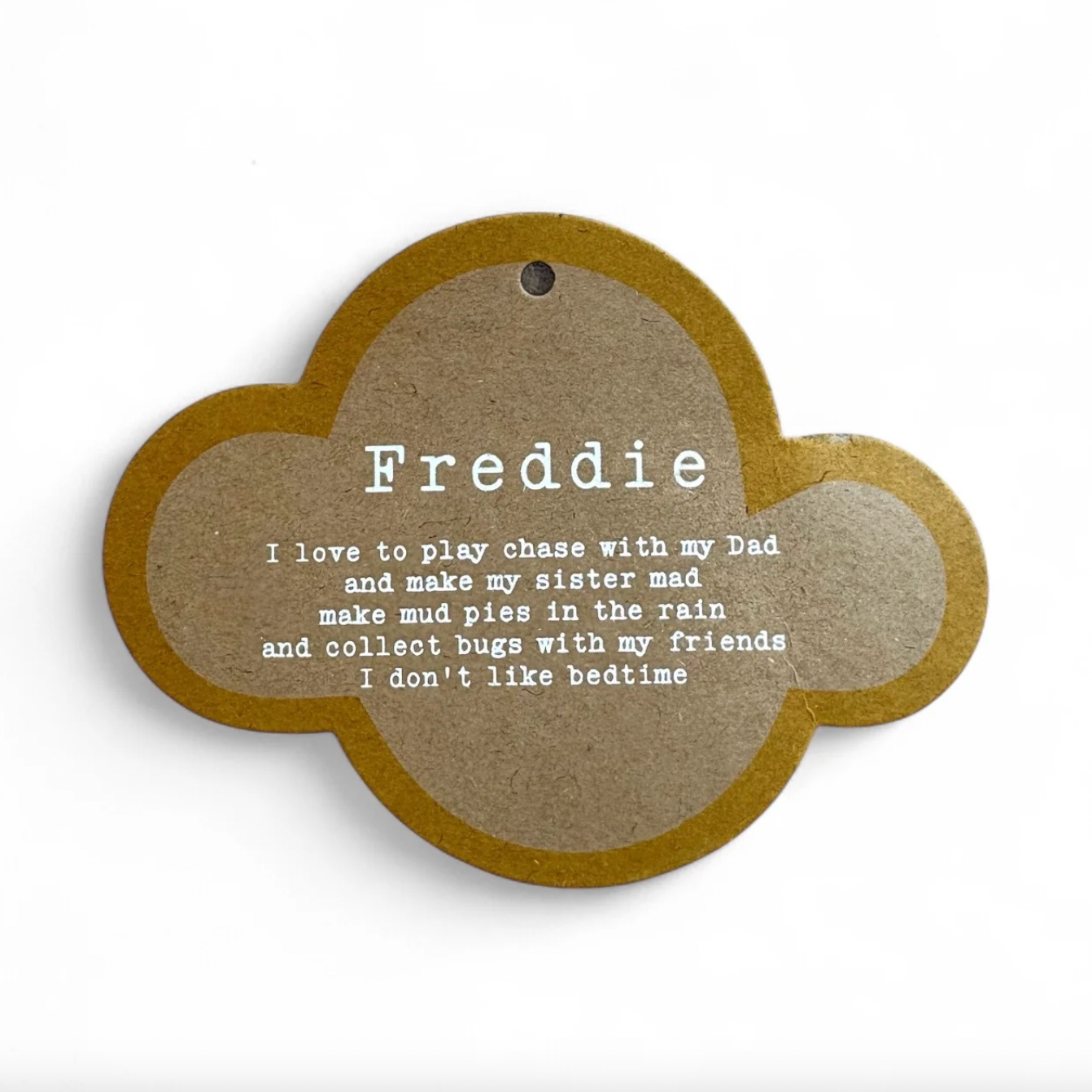 Freddie will become your new forever friend. Made with super soft creamy plush, Freddie wears a rust coloured hat to keep him warm.