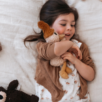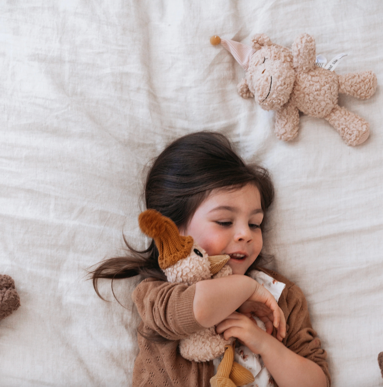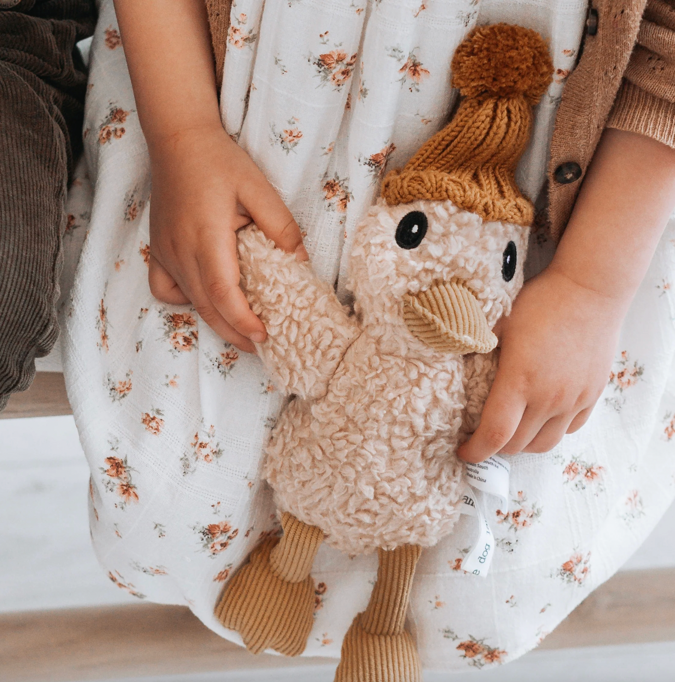 Petunia is one of our favourite forever friends. Made with unique cotton plush fabric and a cozy Australian merino wool knitted beanie, she loves ice-cream sundaes, collecting everything, and playing on her swings. She doesn't like spinach.