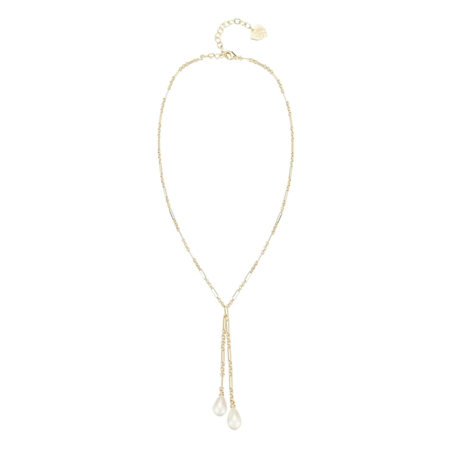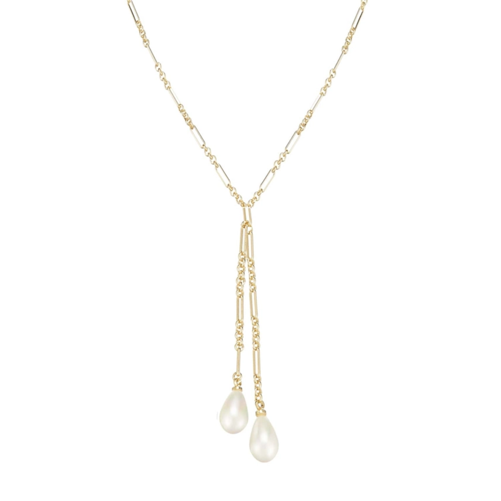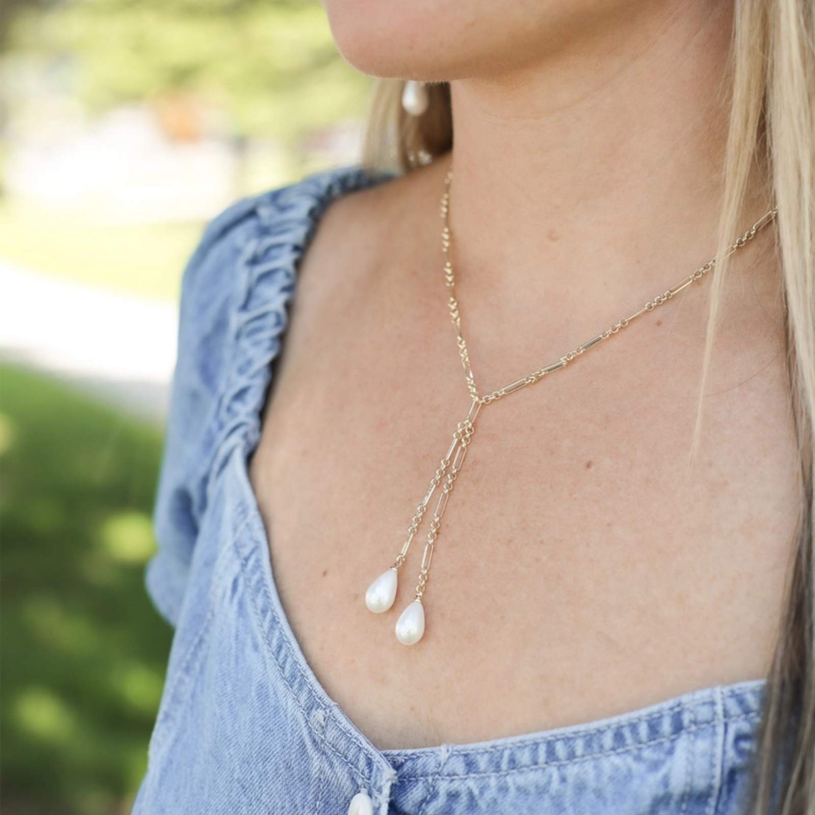 Sophisticated and classic, our Adorned Pearl Lariat Necklace is as unique as you are. Featuring a delicate gold chain with two elegant pearl drops, this necklace with add an effortlessly chic element to your outfit.