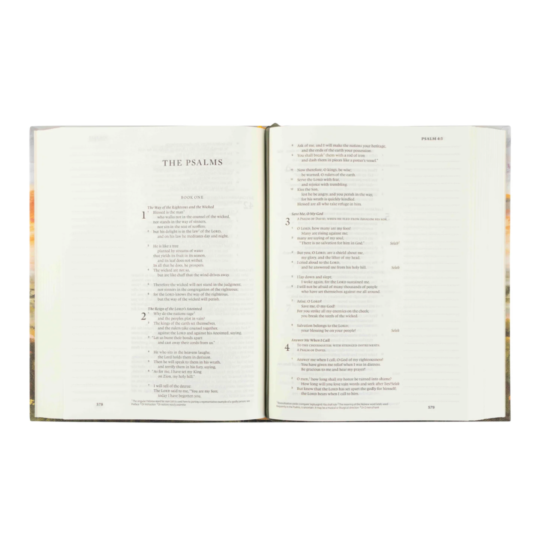 This hardcover landscape ESV Journaling Bible would make the perfect heirloom gift for a friend or family member. With wide-lined margins, the interior is designed for journaling thoughts, prayers, and Scripture.