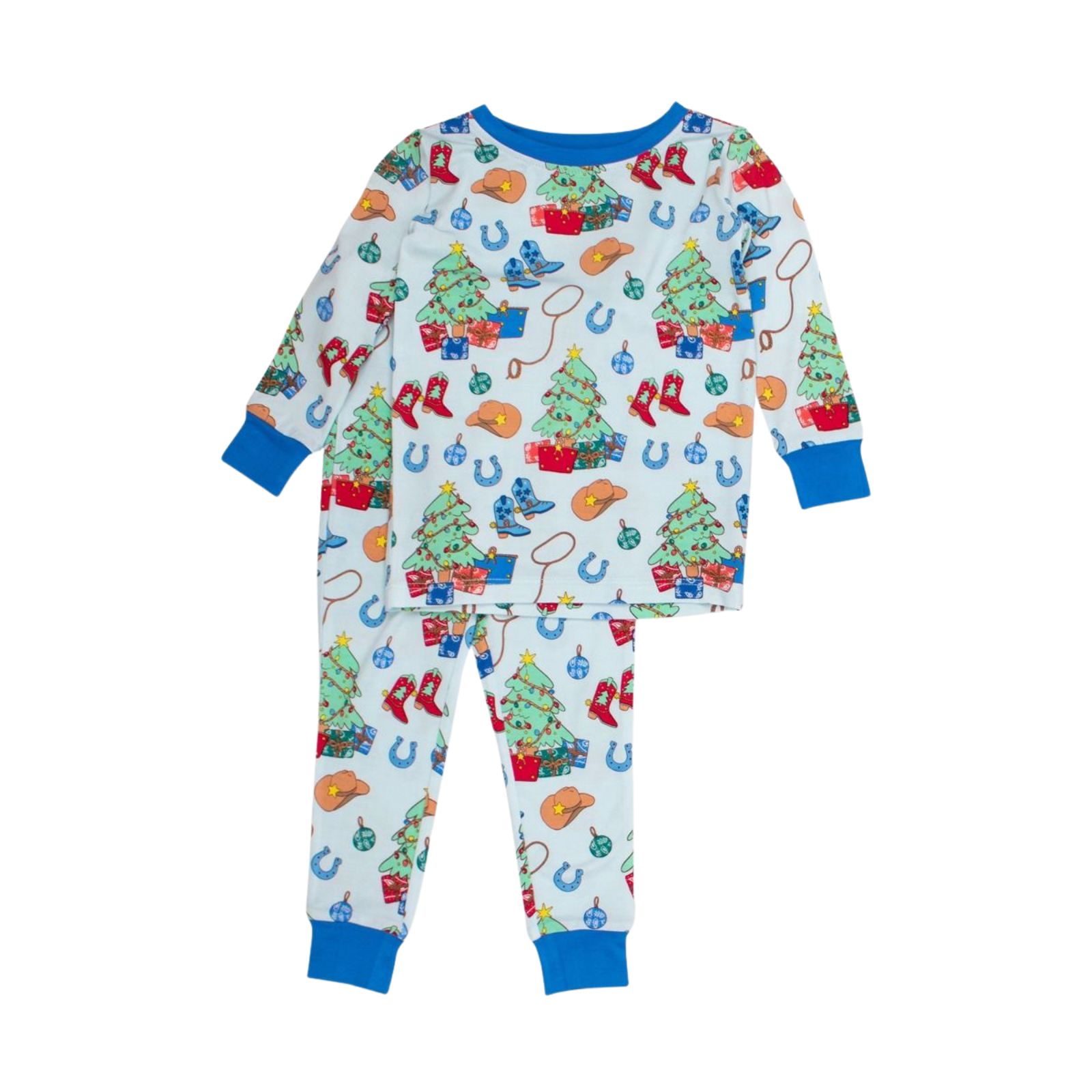 Blue Yuletide Yeehaw Two Piece PJ Set