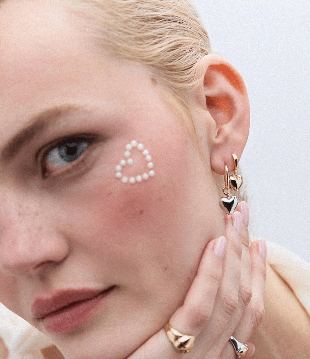 • Two-tone design featuring puffy hearts