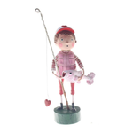 Designed as a young boy with a fishing pole and fish, this decorative accent is full of charm. Creative in style with its primitive design and intricate artistry, the polyresin fishing boy shelf sitter is perfect for displaying as part of the country, rustic, contemporary, and Valentine decor. The charming Lori Mitchell figure makes a beautiful Valentine's Day display piece for an office, classroom, living room, or bathroom. Measuring 7"H, this cute accent looks lovely displayed on a shelf, coffee table, or mantel.