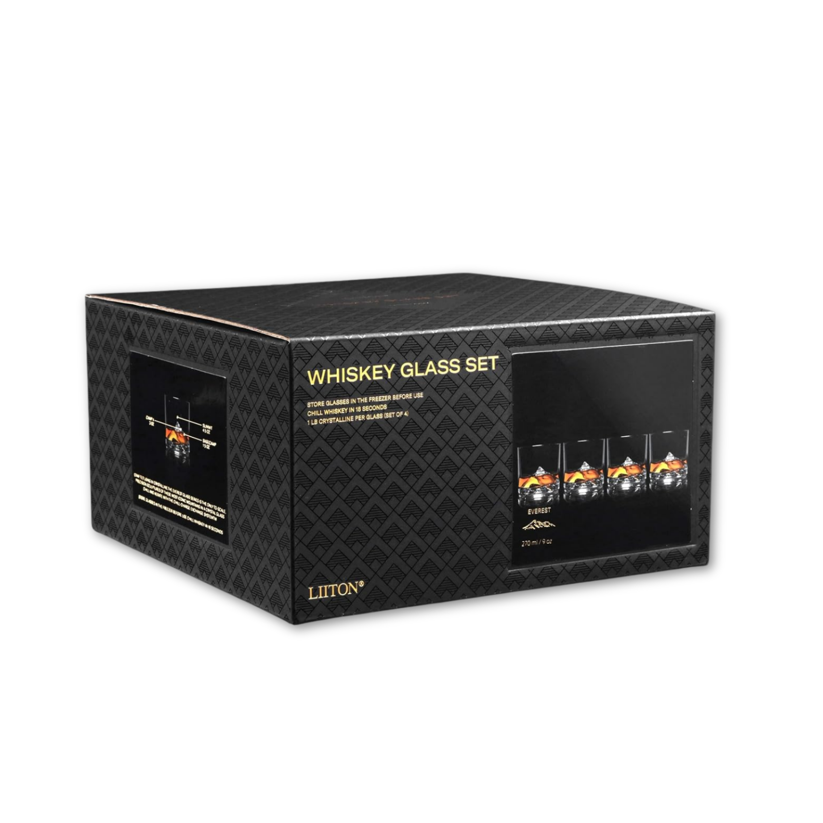 This crystal whiskey glass replicates the Everest Mountain. It naturally chills and aerates bourbon, scotch, tequila, vodka, or cocktails, elevating your drinking experience as you swirl the glass.